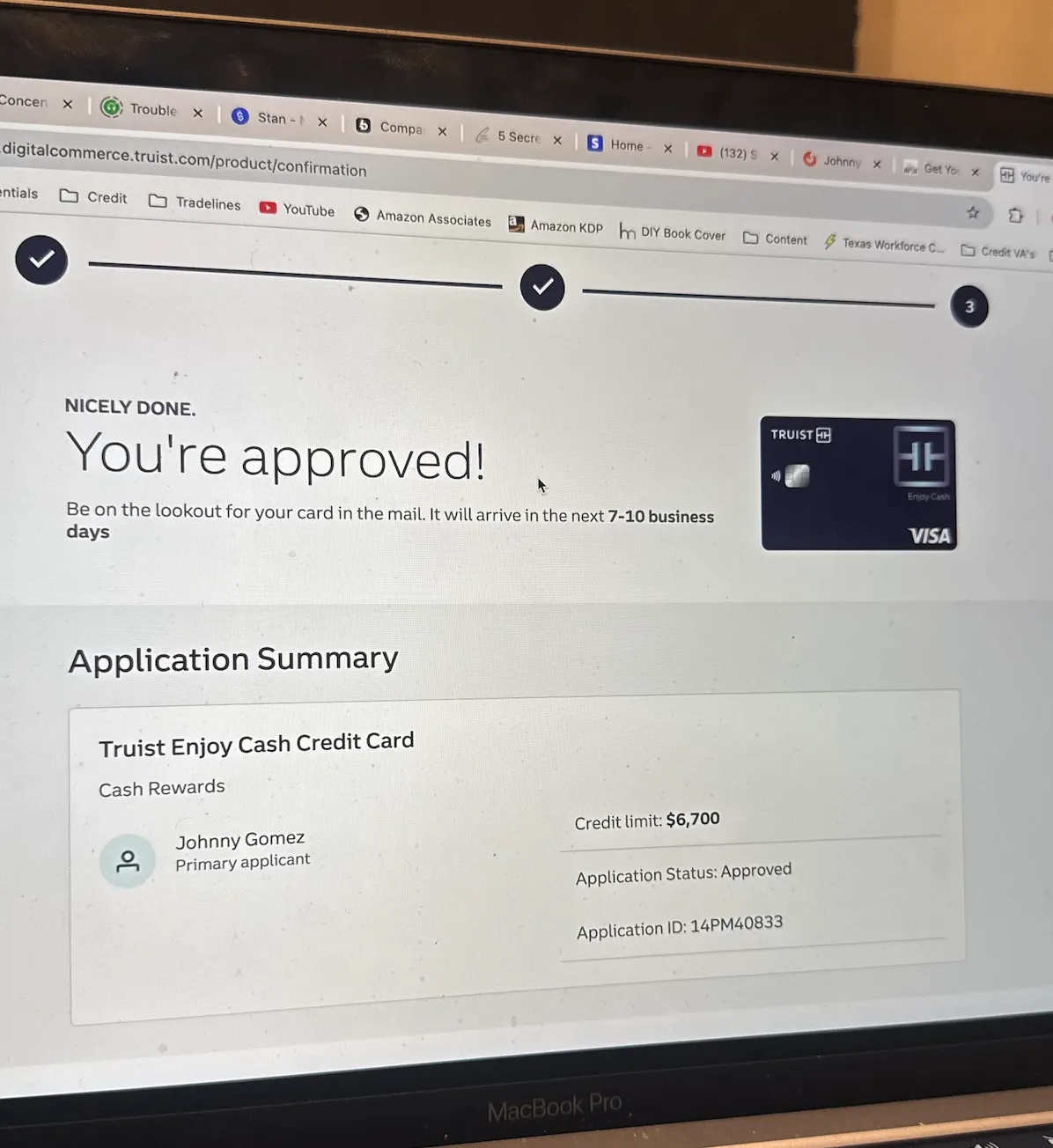 We were able to have him approved for $71,600 with 0% APR business card. As a result, Scott is now ready to clearly differentiate between his business and personal finances.